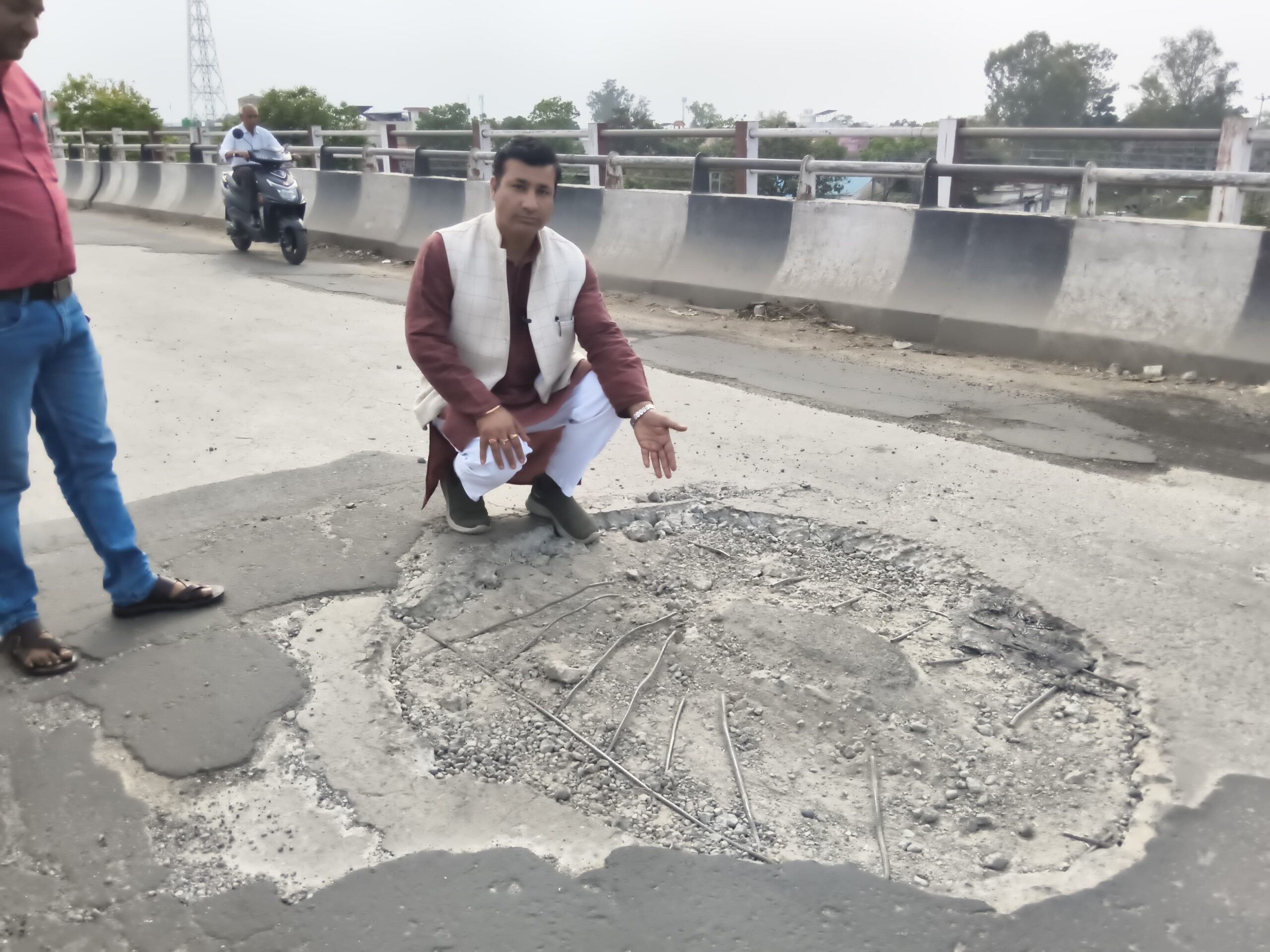 मौके पर उपस्थित स्थानीय लोगों को संबोधित करते हुए उन्होंने कहा कि प्रतिदिन सैकड़ों लोग इस फ्लाईओवर से गुजरते हैं और अपनी जान जोखिम में डालकर यात्रा करने को मजबूर हैं। उन्होंने संबंधित विभागों की कार्यशैली पर सवाल उठाते हुए इसे घोर लापरवाही बताया।