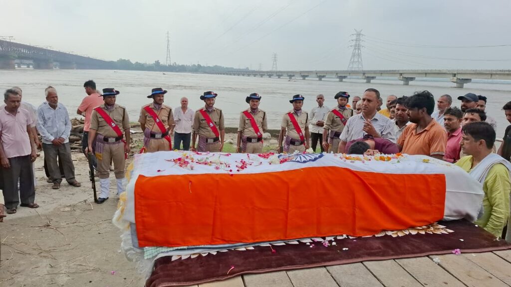 सुबह बालावाली गंगा के घाट पर पूरे सैनिक सम्मान के साथ उनको सलामी देने के बाद उनका अंतिम संस्कार किया गया।